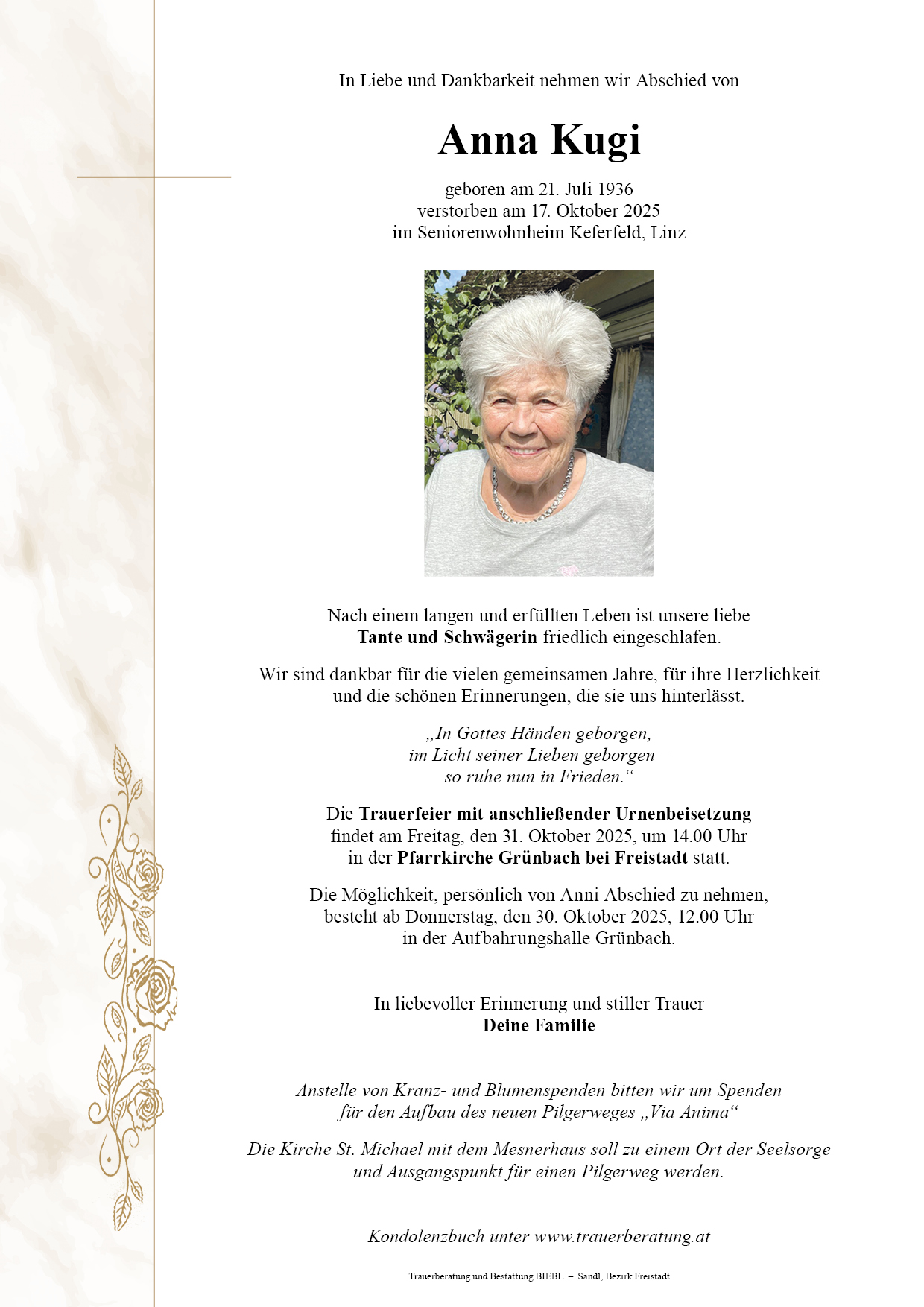 Die Möglichkeit, persönlich von Anni Abschied zu nehmen,