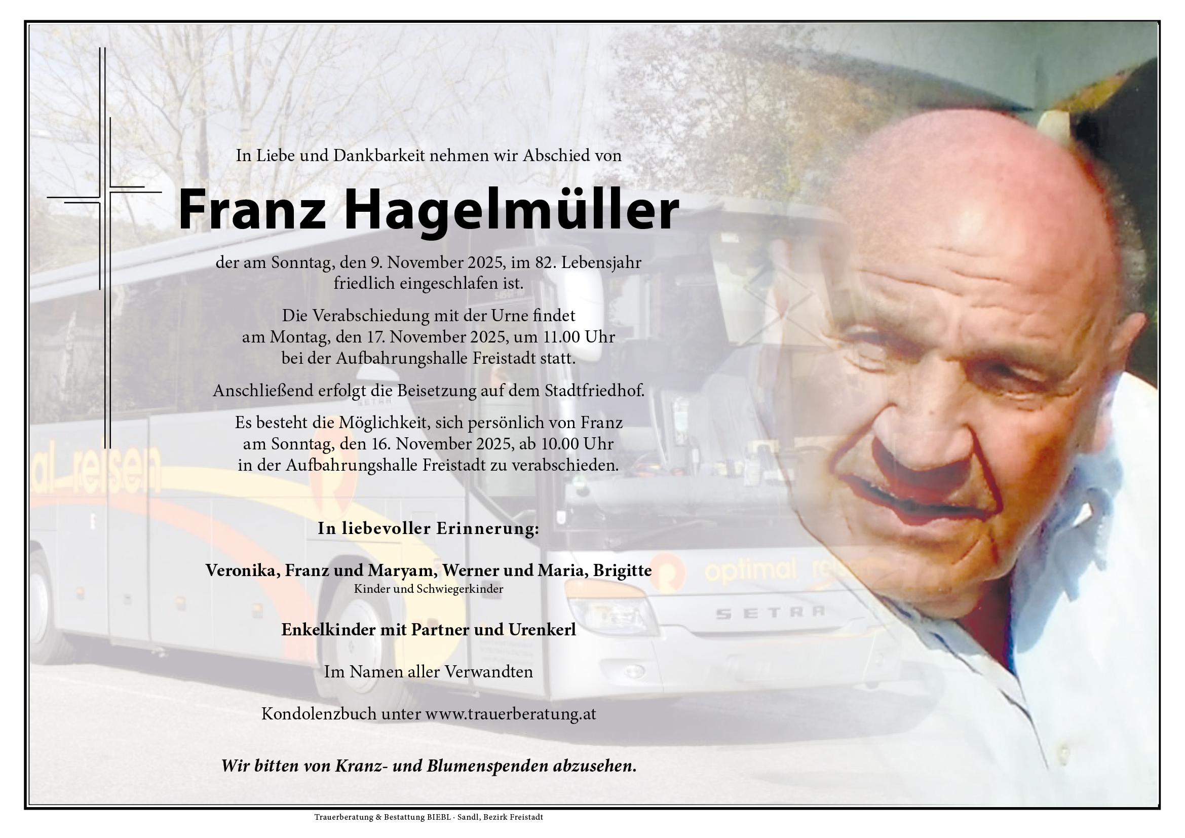 19. November 2025 at 20:31Ruhe in Frieden lieber Franz! Letzte Grüße Sr. Lisi
