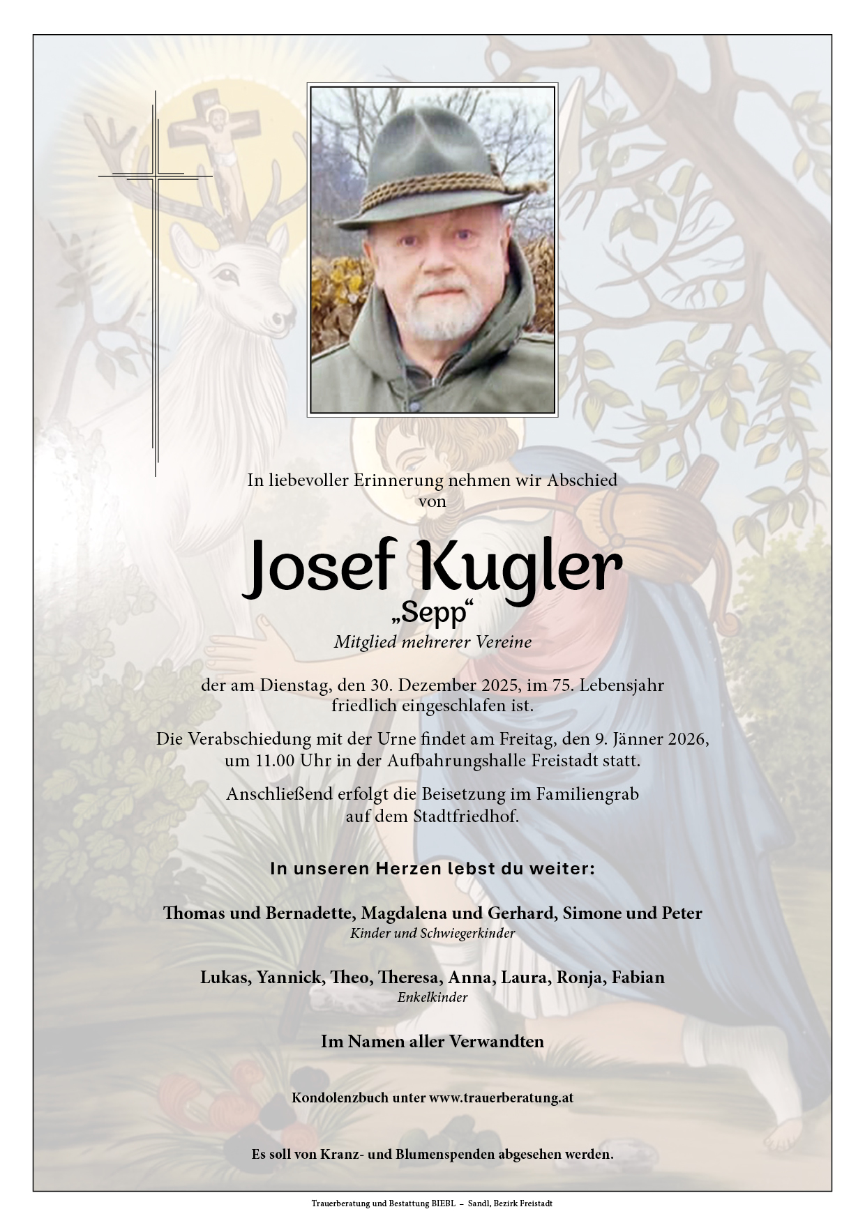 Die Verabschiedung mit der Urne findet am Freitag, den 9. Jänner 2026,