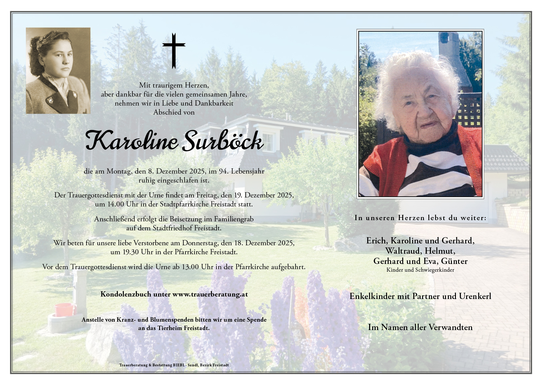 Anstatt Kranz- und Blumenspenden bittet die Familie um eine Spende.