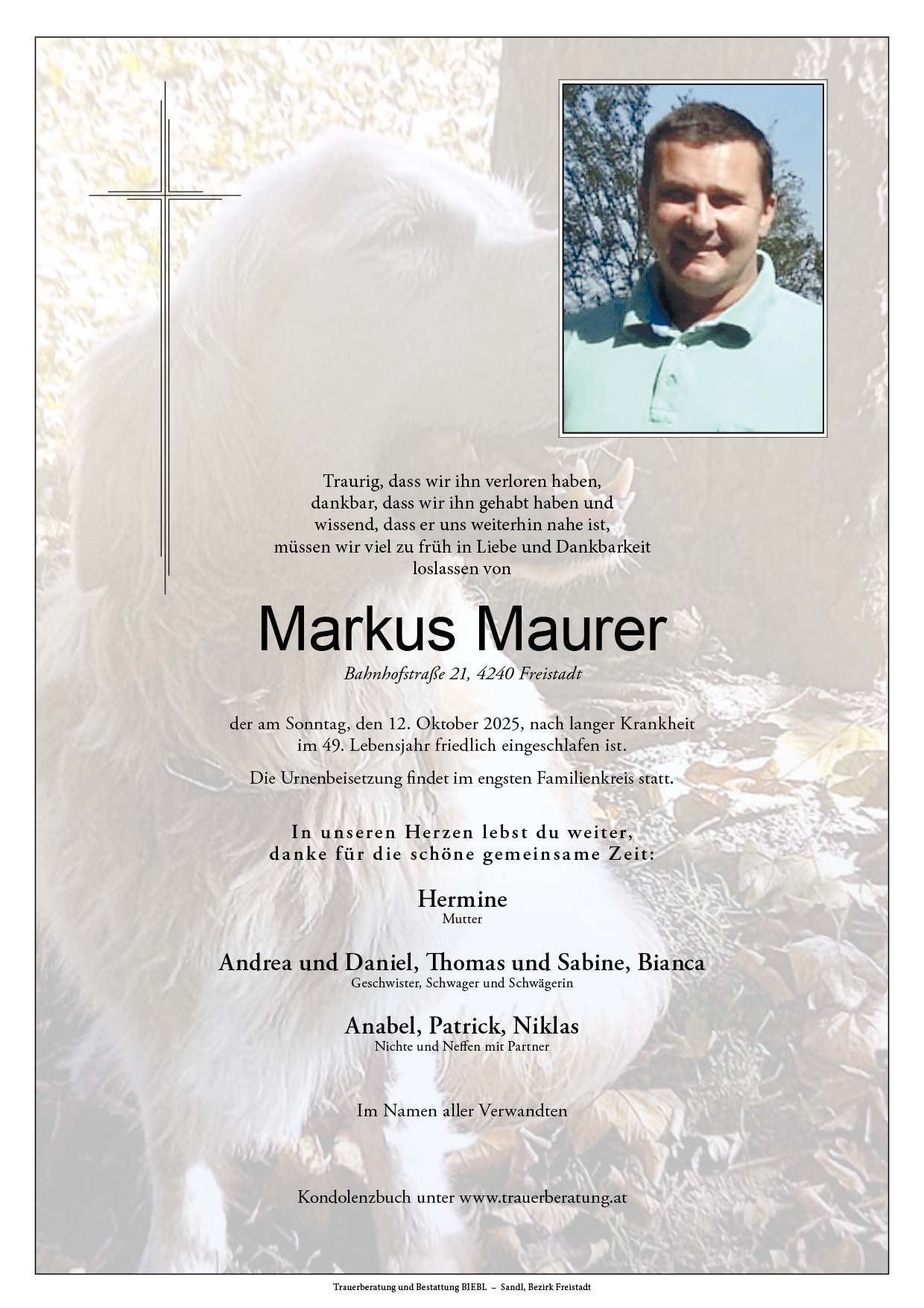 14. Oktober 2025 at 12:59Liebe Trauerfamilie!