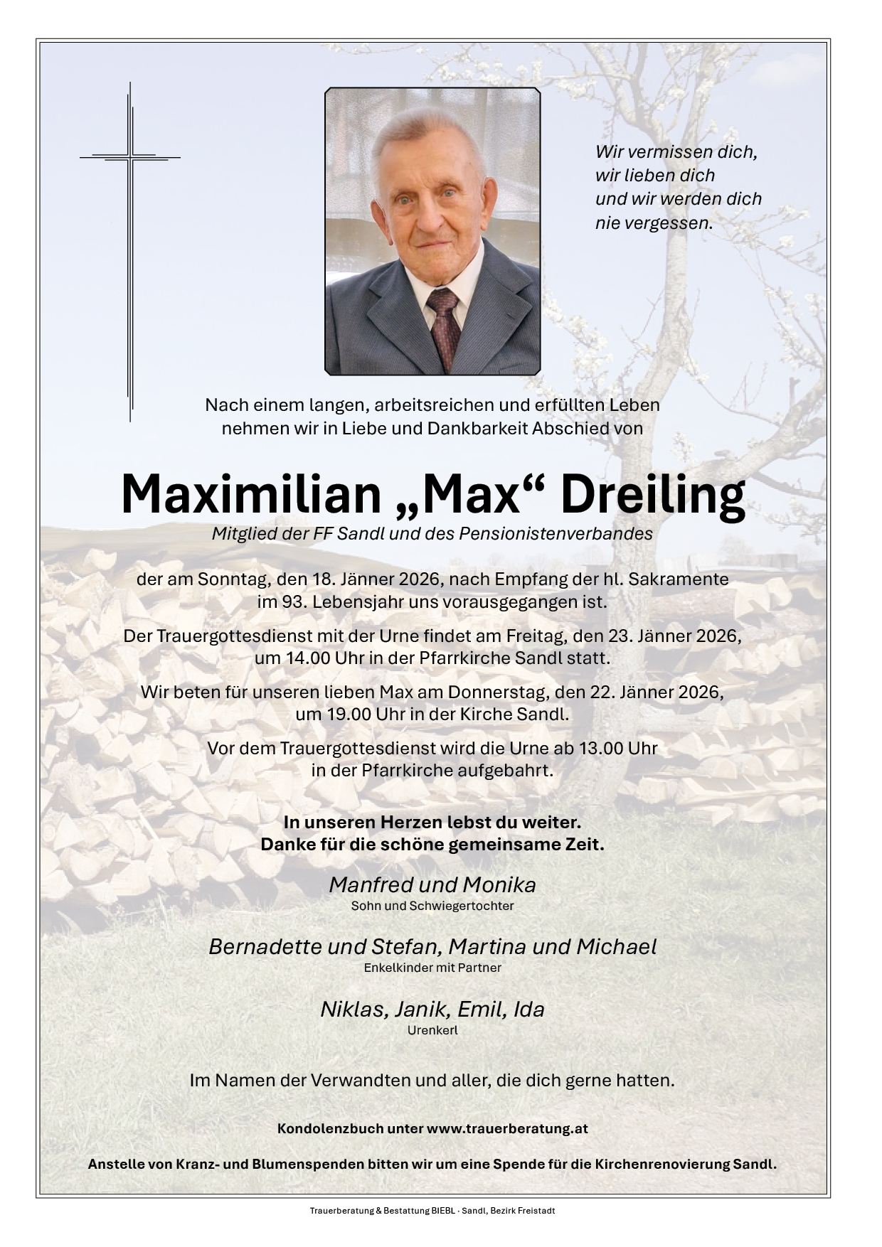 im 93. Lebensjahr uns vorausgegangen ist.