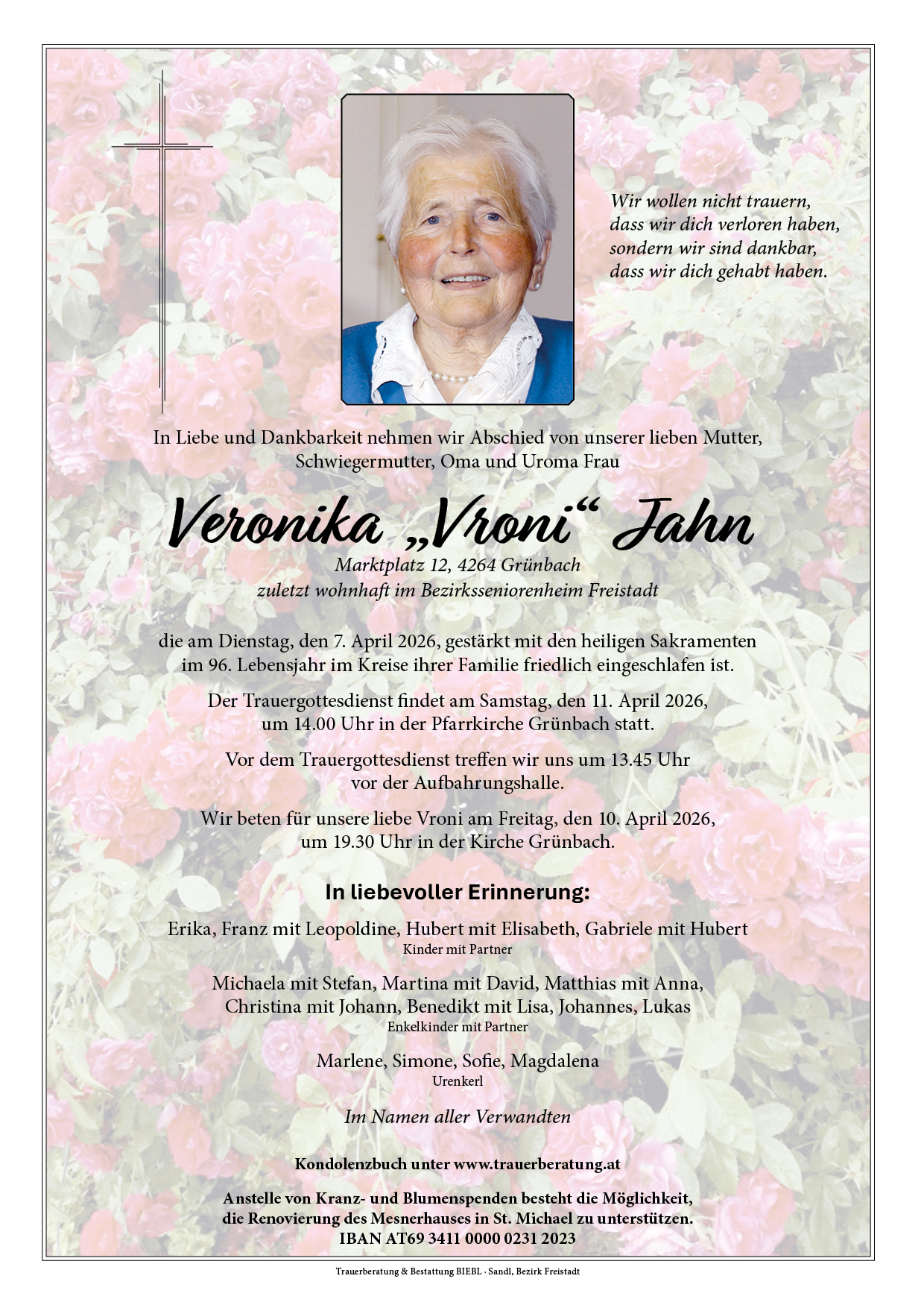 9. April 2026 at 18:08Es gibt eine Zeit der Stille,eine Zeit der Schmerzen und der Trauer,aber auch eine Zeit der dankbaren Erinnerungen.